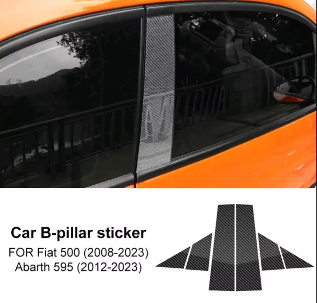 For FIAT 500 ABARTH 595 Window B Pillars Carbon Fibre Pattern Gloss Stickers
